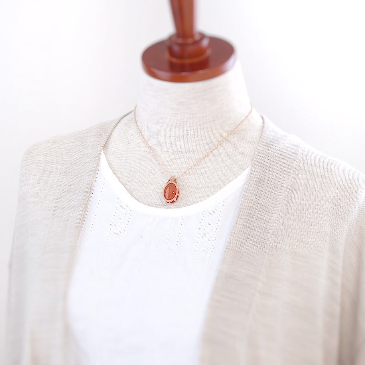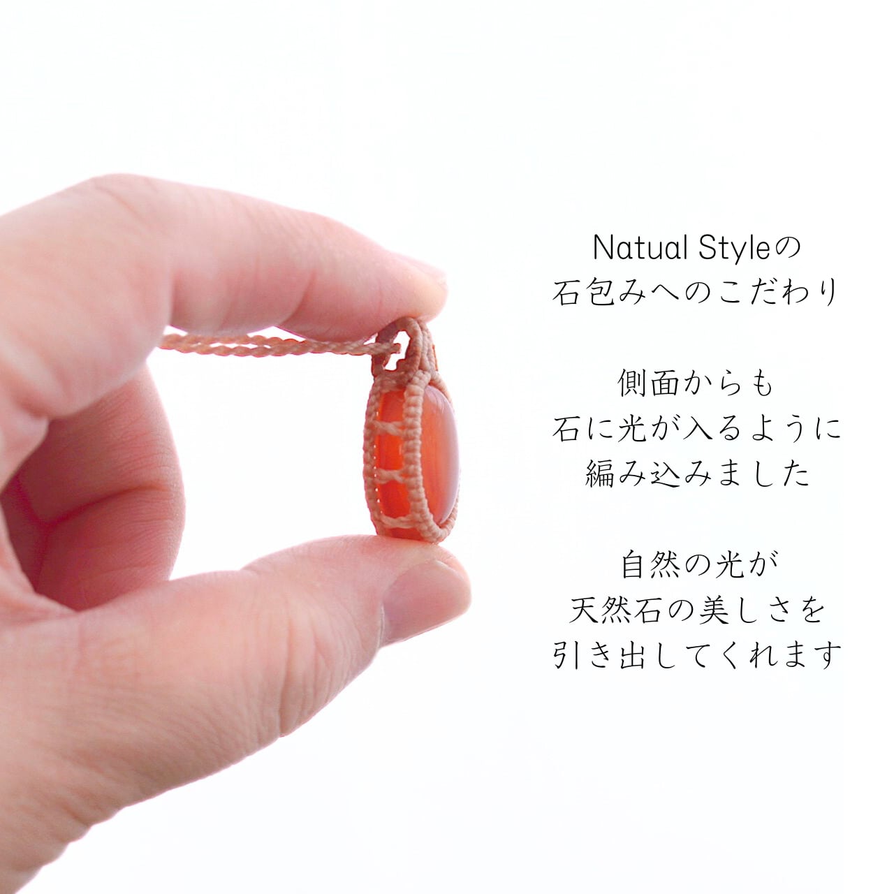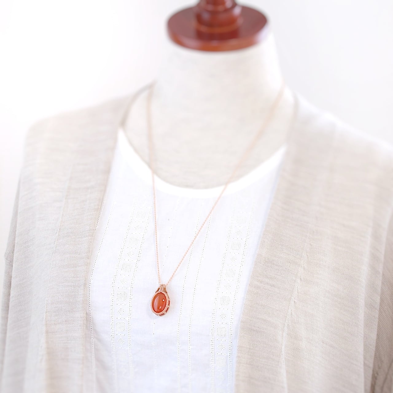 【一点物】カーネリアンのオーバルルースを包んだマクラメネックレスNo.1