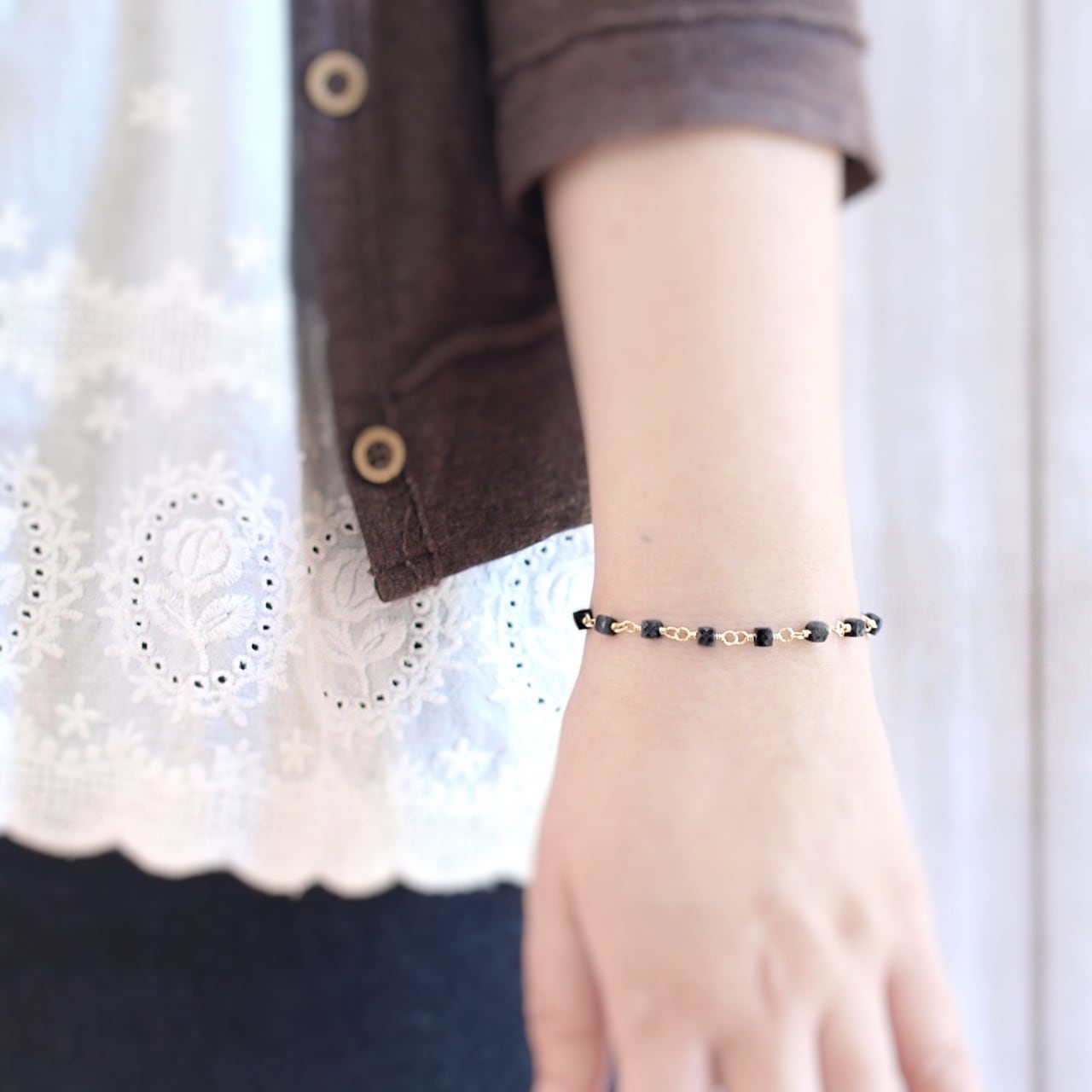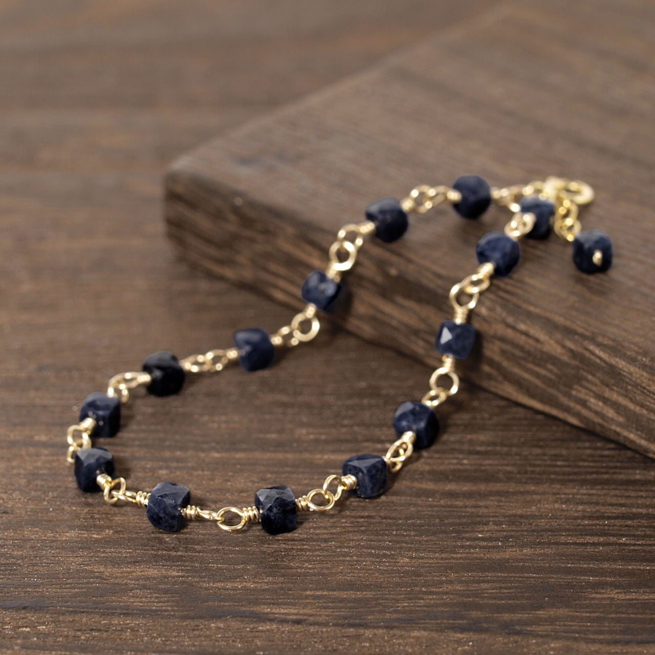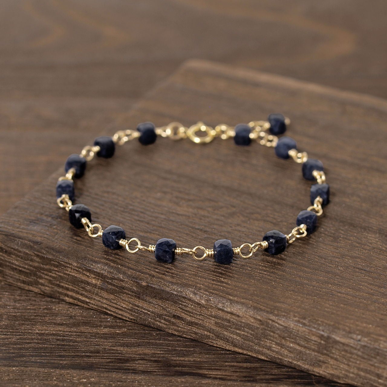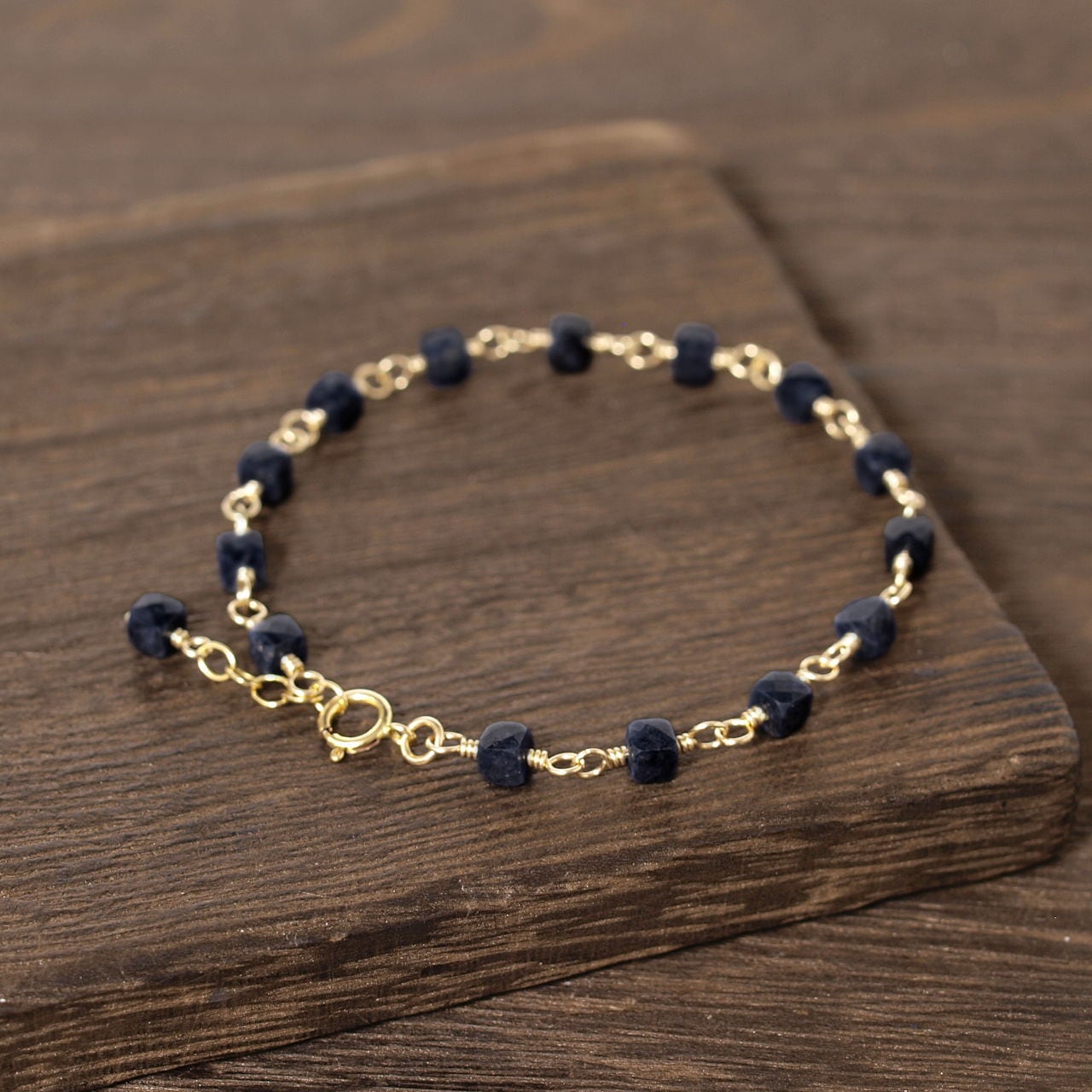 【限定】ブラックサファイアキューブカットを繋いだK14GFブレスレット