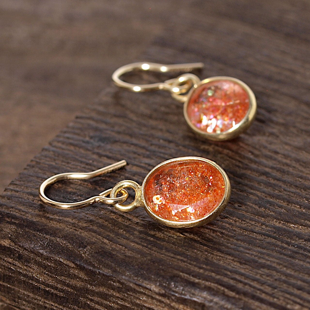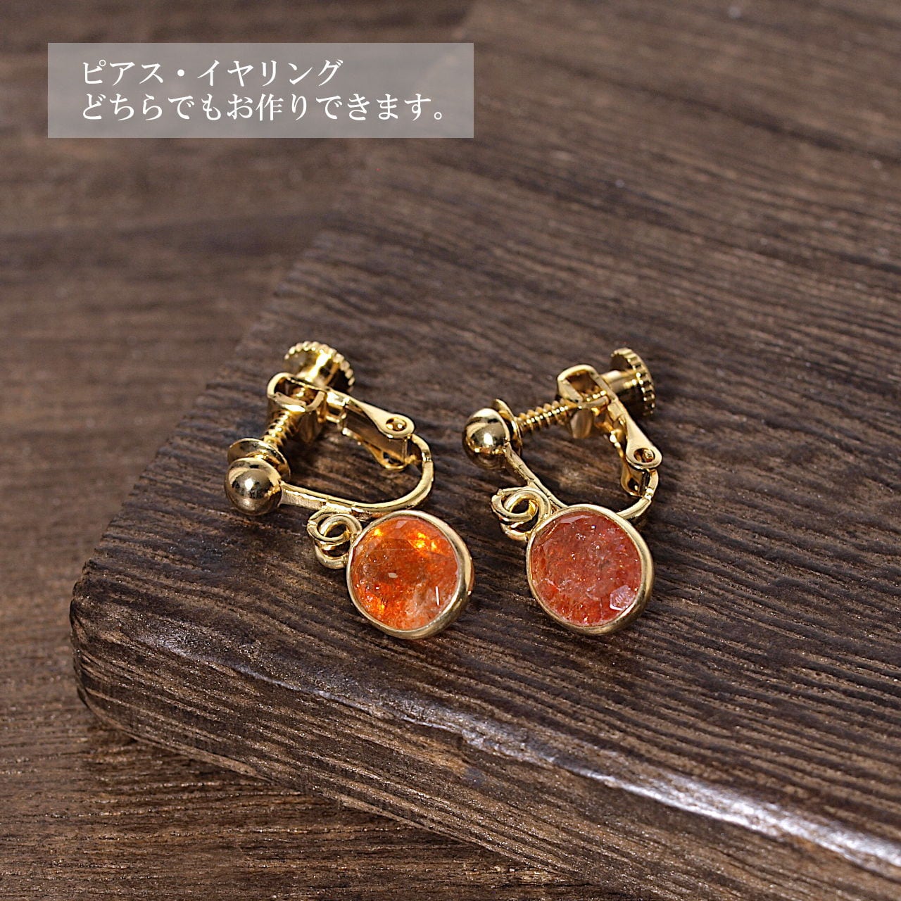【限定】サンストーンK18GP枠留めピアス・イヤリング