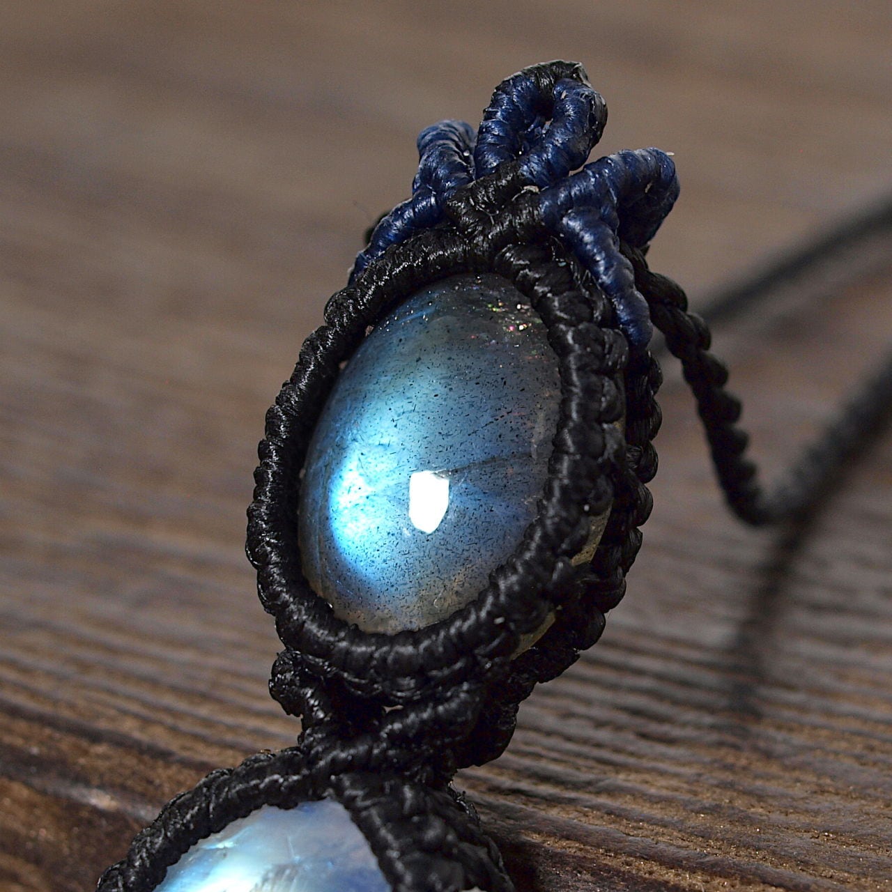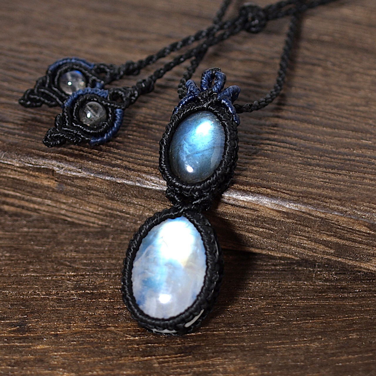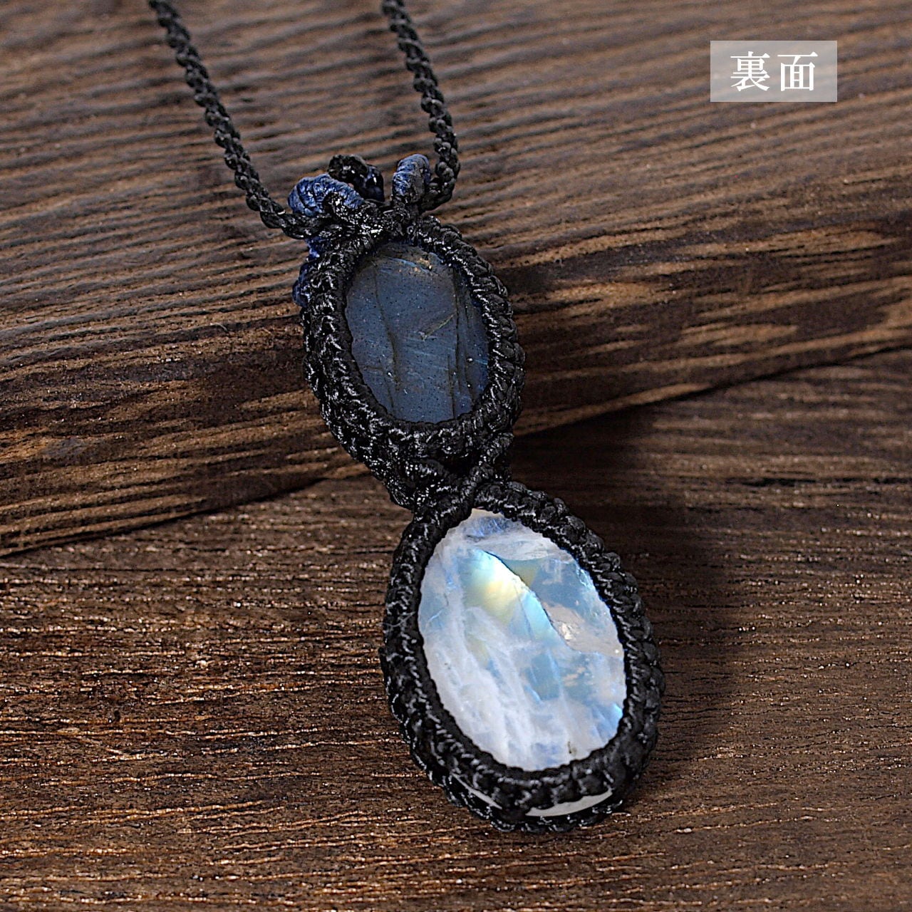 【一点物】ラブラドライト+レインボームーンストーン連結マクラメネックレスNo.4