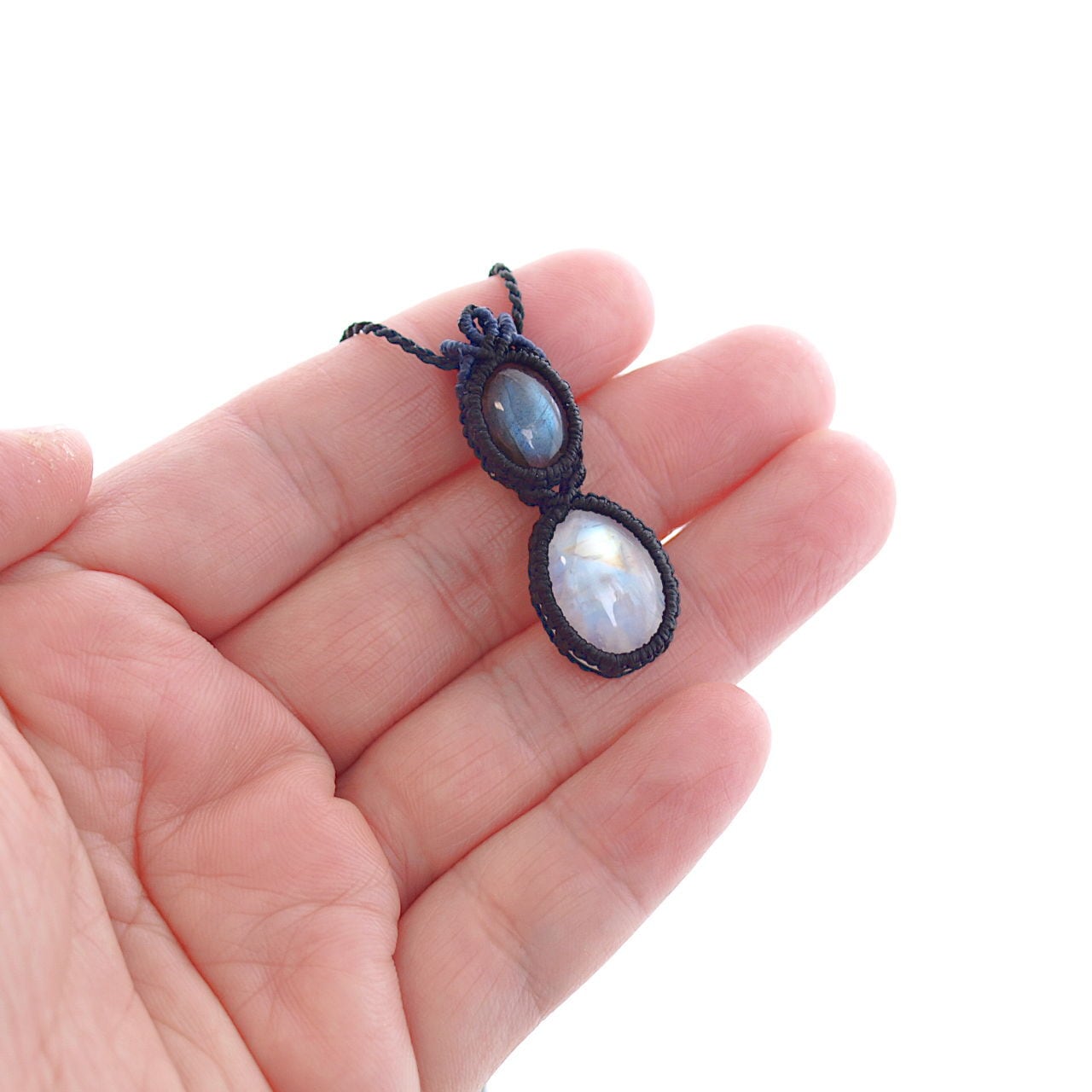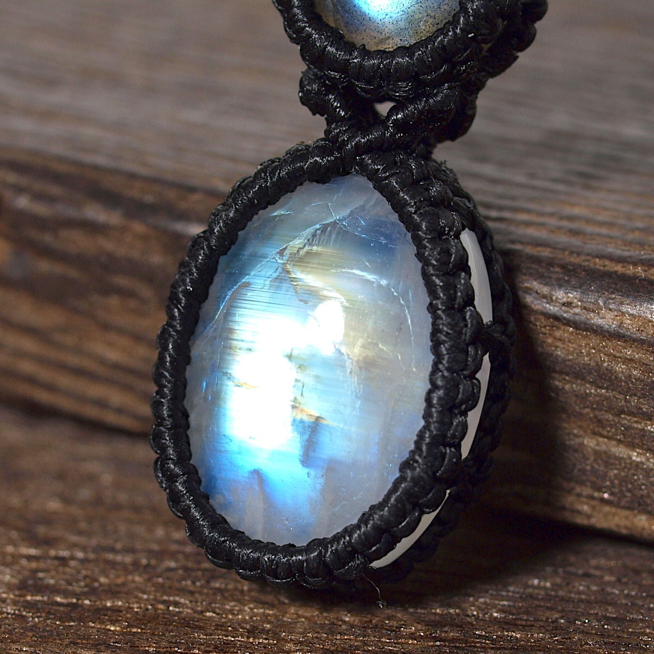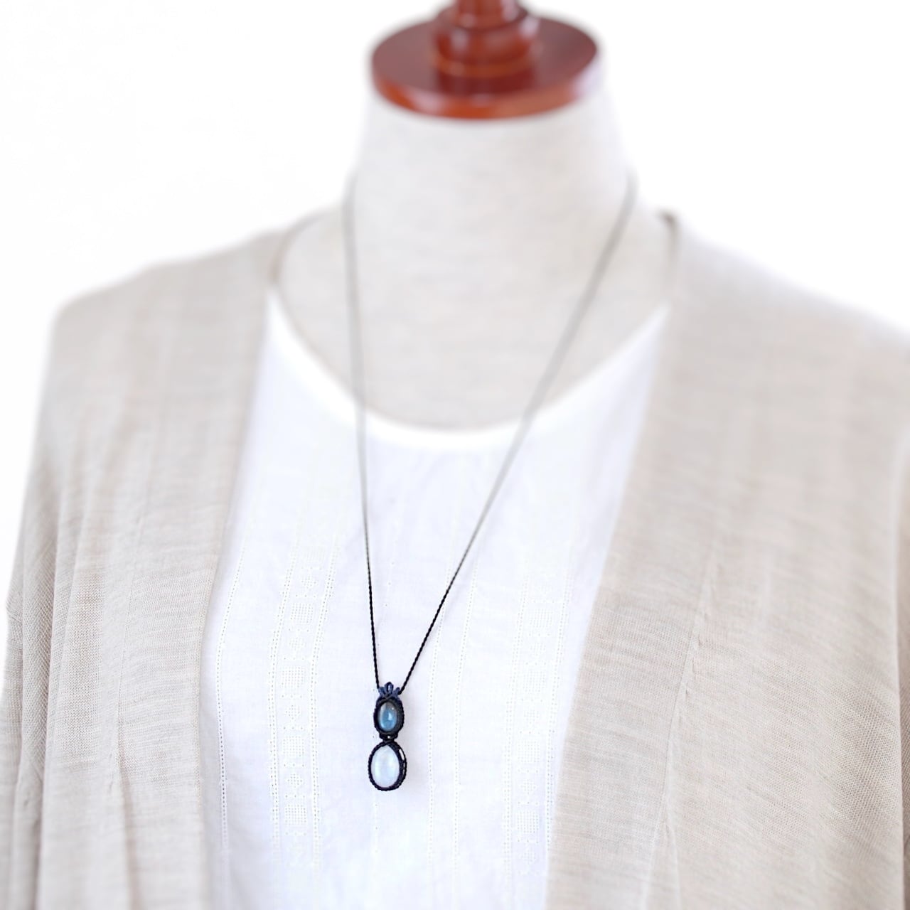 【一点物】ラブラドライト+レインボームーンストーン連結マクラメネックレスNo.4