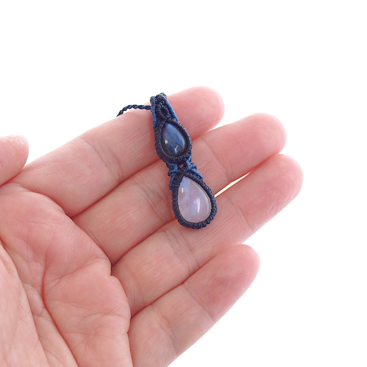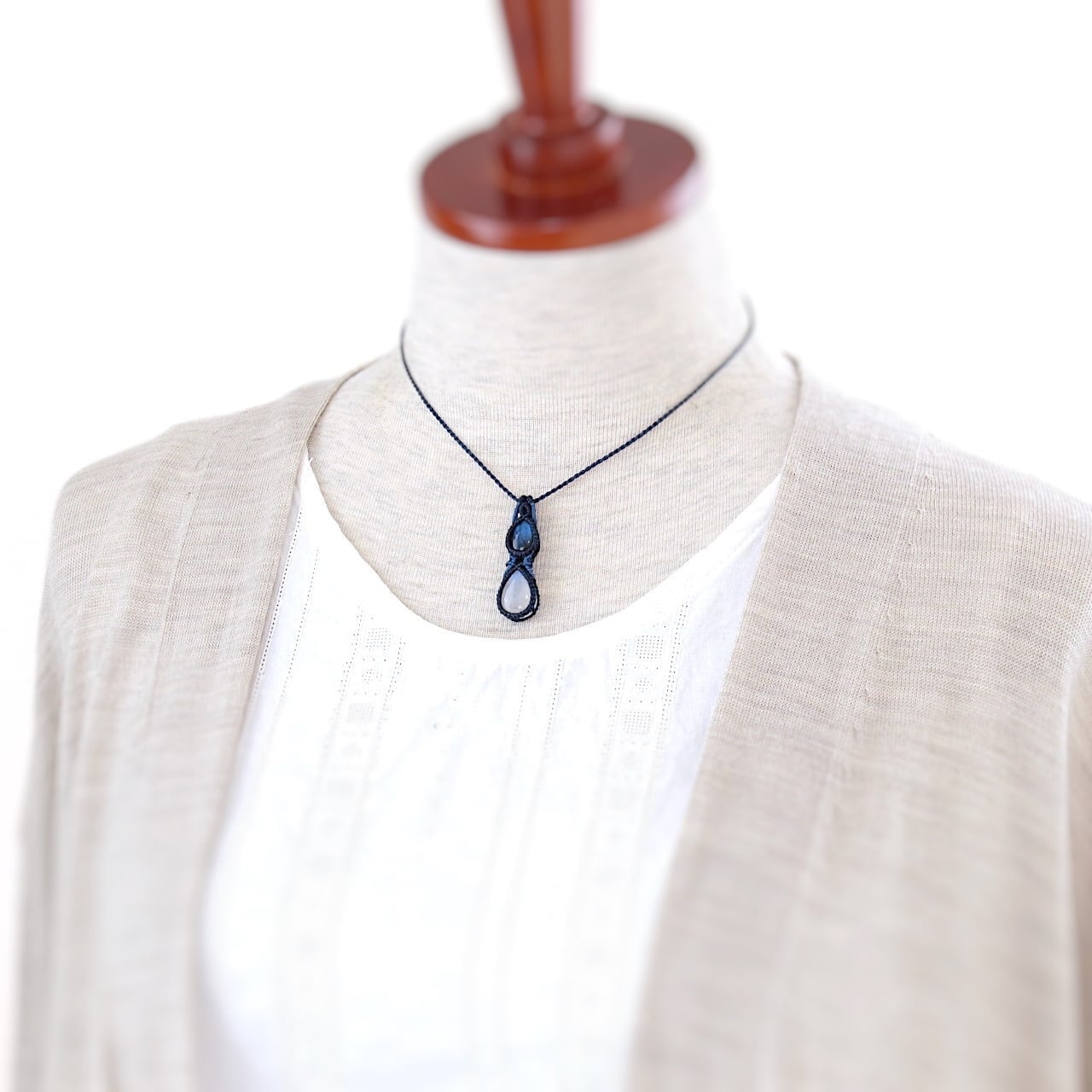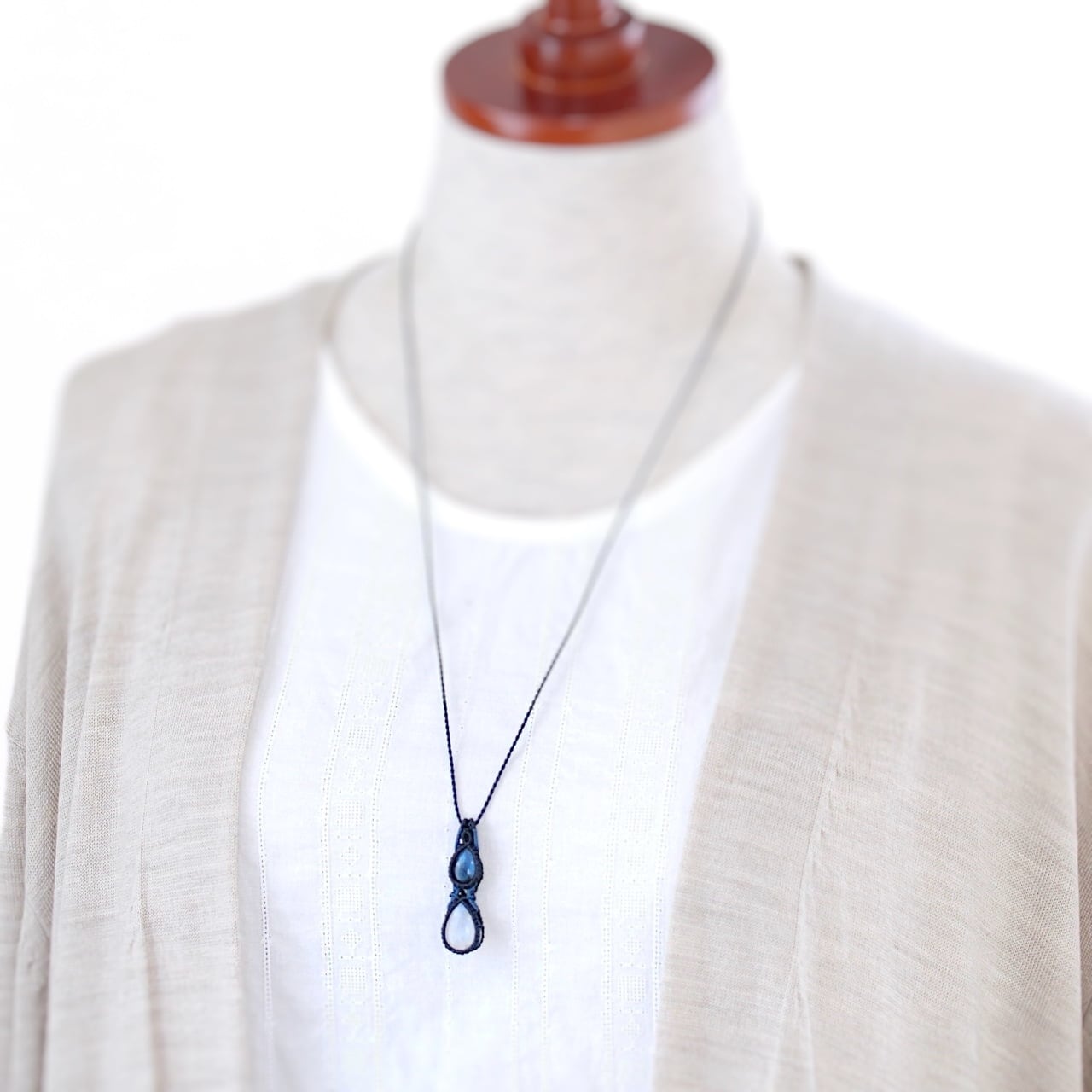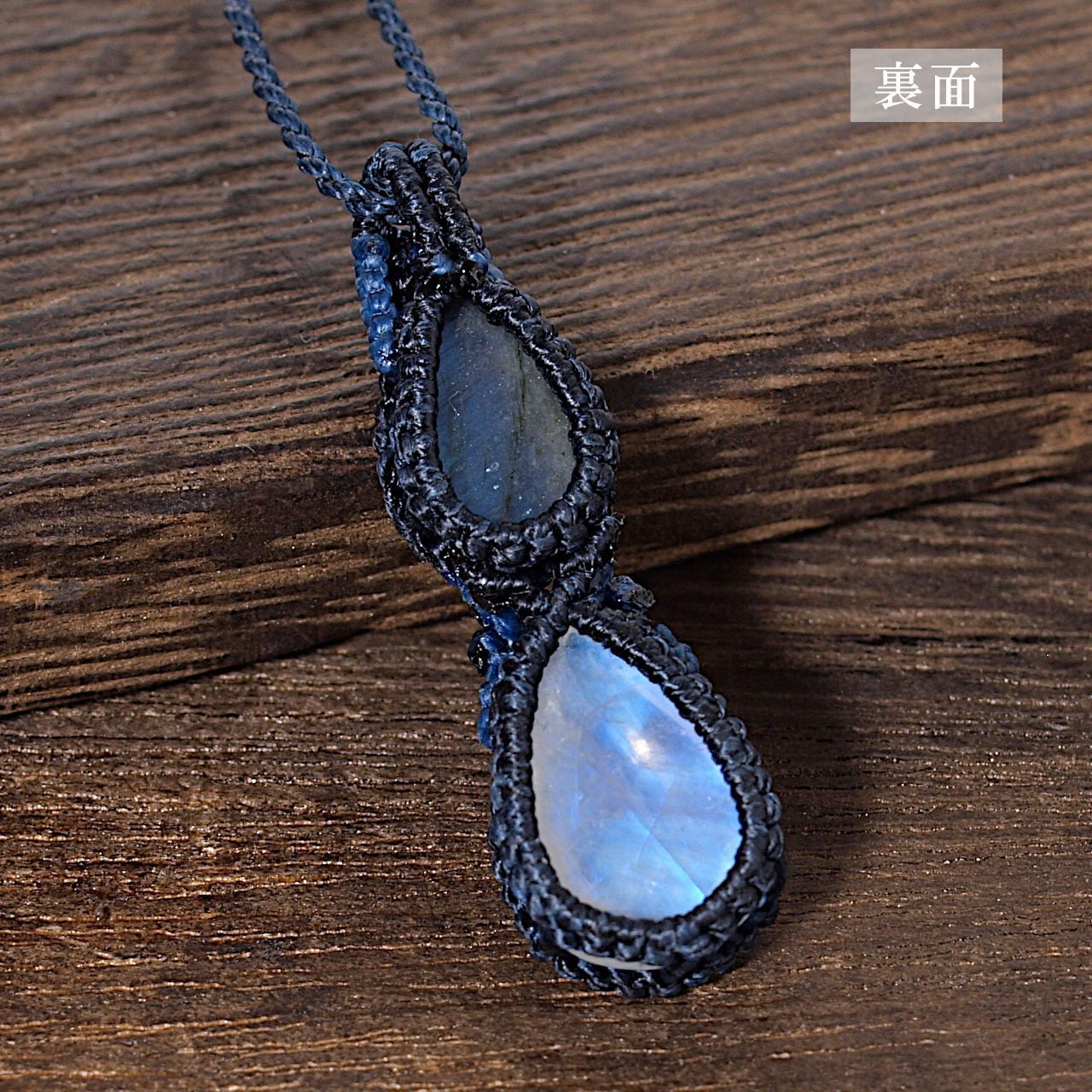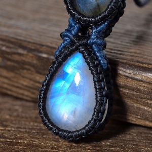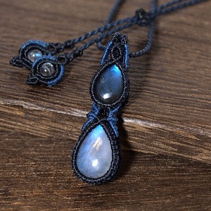 【一点物】ラブラドライト+レインボームーンストーン連結マクラメネックレスNo.3