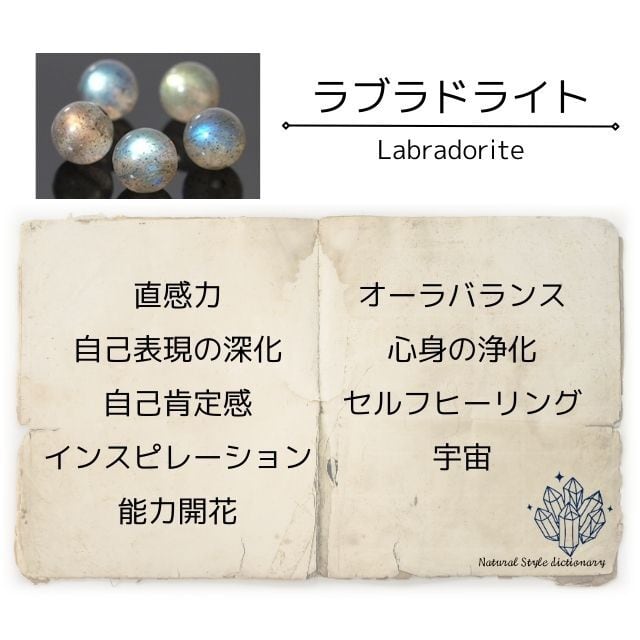 ラブラドライトは、「宇宙からのメッセージ」を宿した石だと信じられてきました。黒や灰色の中に、キラリと輝きが見える様子がとても神秘的で、宇宙をイメージさせるからだと思います。ただの例えではなく、確かにラブラドライトからは霊的な波動を強く感じます。魂に直接届くようなこの石の不思議な波動は、直感力・洞察力・創造力・予知・霊的能力を高めてるといわれています。