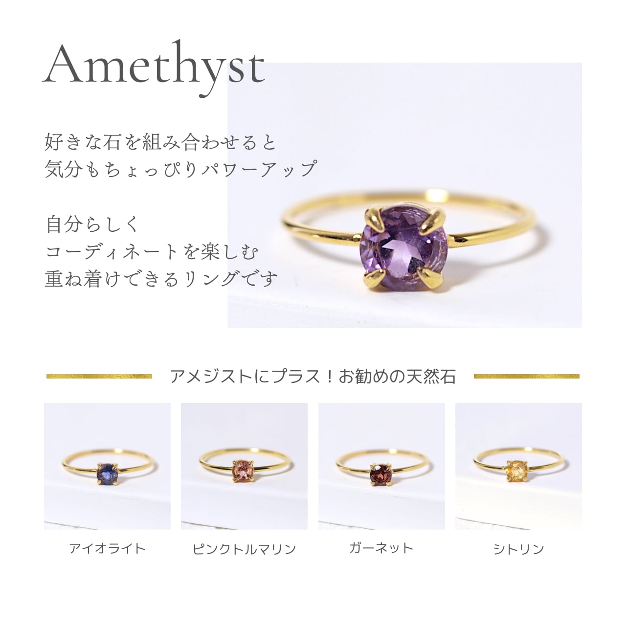 【限定】重ねて楽しむ天然石リング(ライトカラーアメジスト6mm)