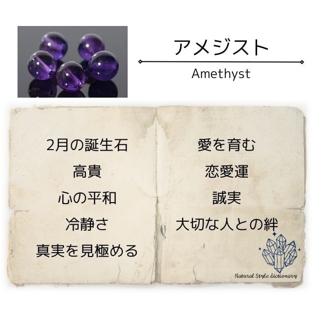 アメジストは精神を落ち着かせてくれることから、この石を身につけると感情をコントロールするのが上手になると伝えられています。仕事においても、恋愛や人間関係においても、ほどよく冷静を保ち、自分と周囲の人を見極め、正しい判断をくだせるようになるでしょう。また「真実の愛を見抜く」パワーストーンだという言い伝えがあり、恋によって溺れてしまわないように、真実の愛を見極められるようサポートしてくれます。