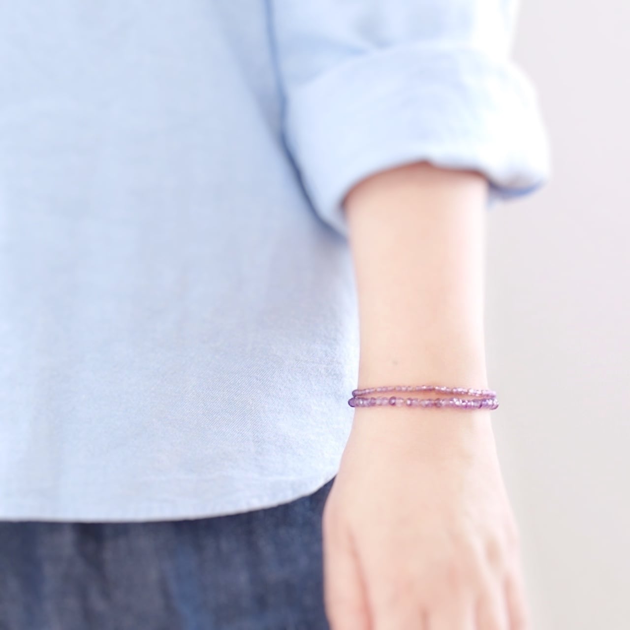 【限定】ライトカラーアメジストをシルクコードで柔らかく繋いだ2連ブレスレット