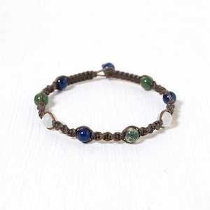 ソーダライト+モスアゲート+ムーンストーン6ミリ玉ナチュラルマクラメブレスレット