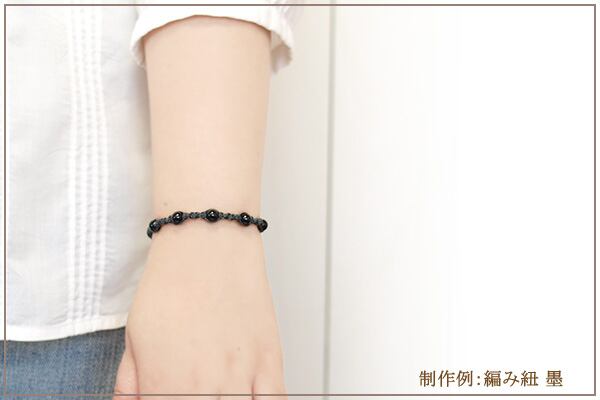お客様の手首サイズに合わせて、お好きな紐色で制作いたします。編み込む石の数はサイズによって増減しますが、画像の見本品に近い品質をお届けいたします。