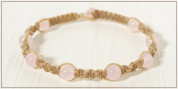 ローズクォーツ6ミリ玉ナチュラルマクラメブレスレット