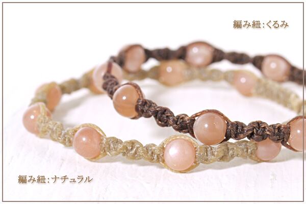 オレンジムーンストーン6ミリ玉ナチュラルマクラメブレスレット