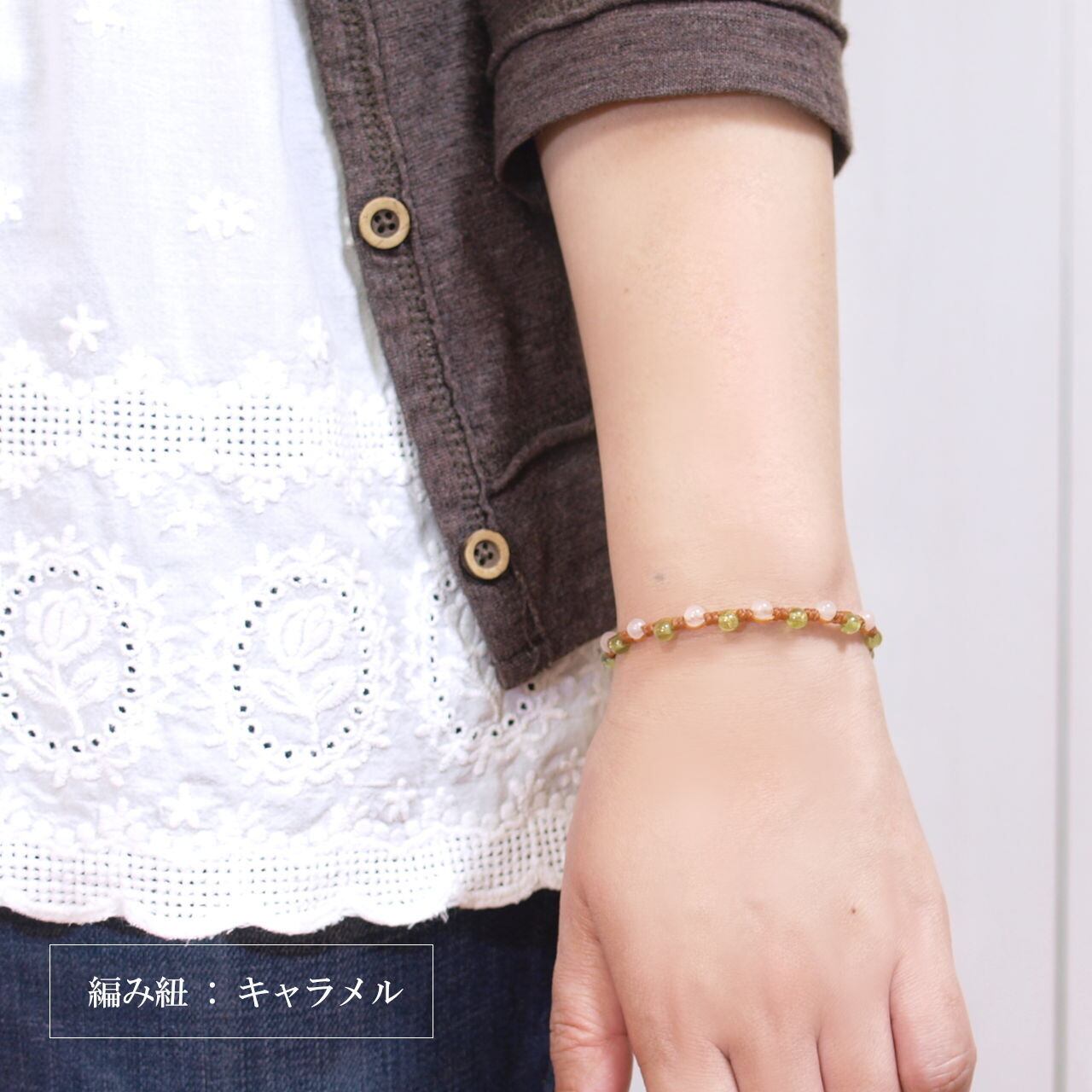 ローズクォーツ+ペリドット4ミリ玉つゆマクラメブレスレット