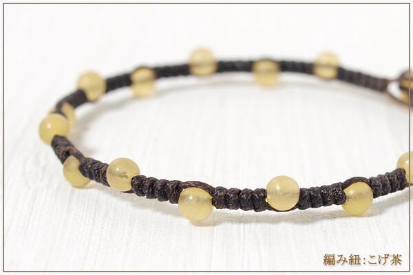 お客様の手首サイズに合わせて、お好きな紐色で制作いたします。編み込む石の数はサイズによって増減しますが、画像の見本品に近い品質をお届けいたします。