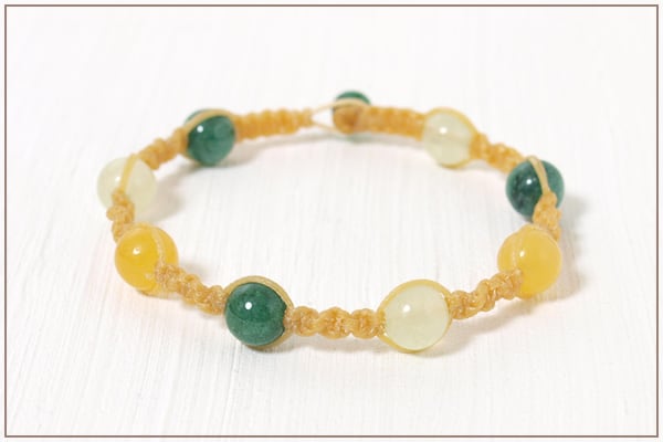 グリーンアベンチュリン+プレナイト+オレンジカルサイト8ミリ玉ナチュラルマクラメブレスレット