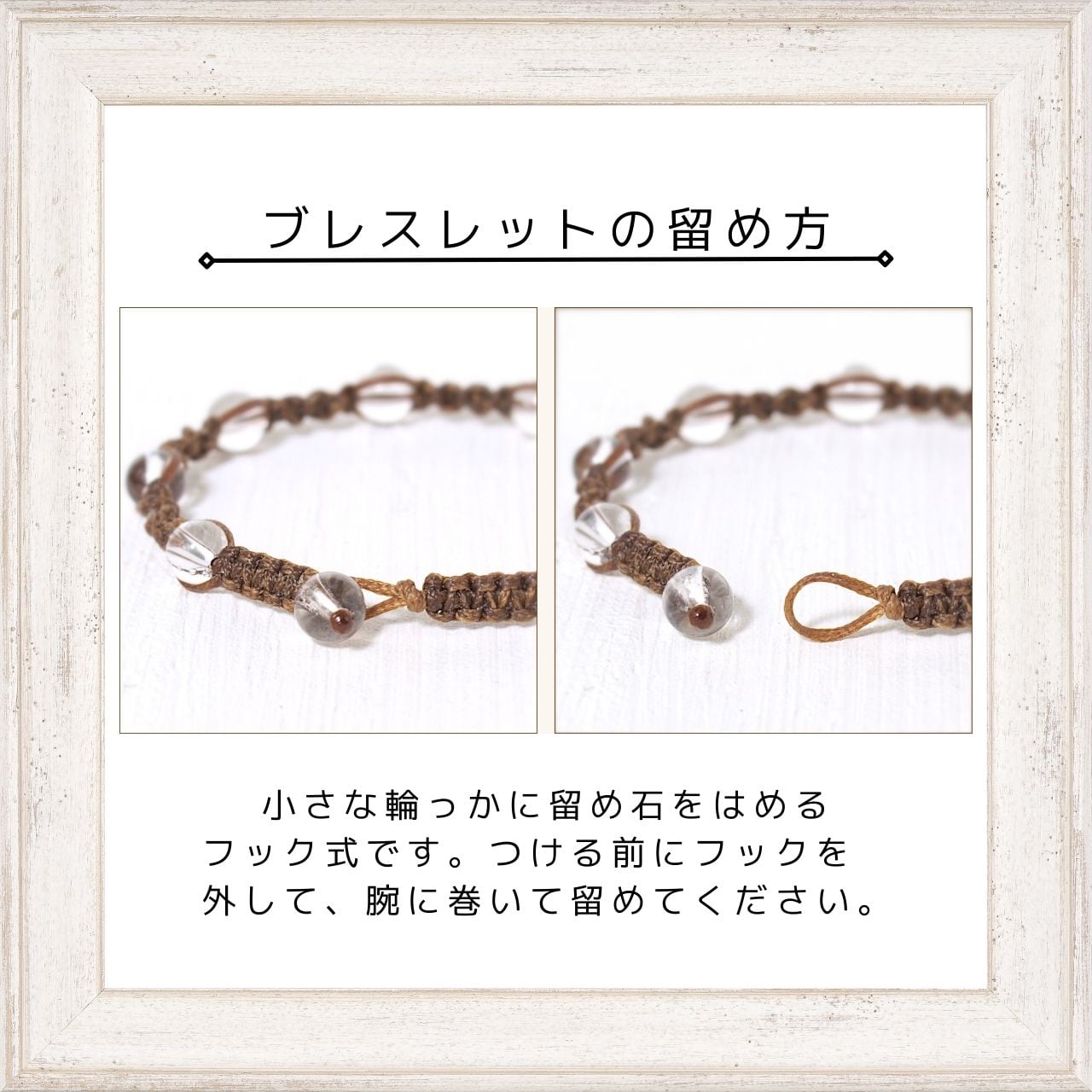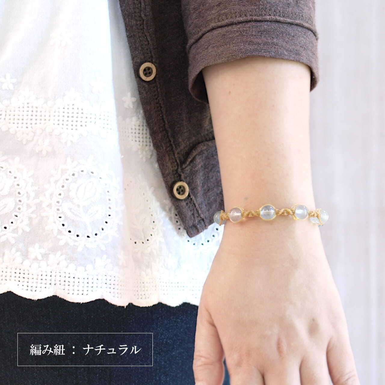 お客様の手首サイズに合わせて、お好きな紐色で制作いたします。編み込む石の数はサイズによって増減しますが、画像の見本品に近い品質をお届けいたします。