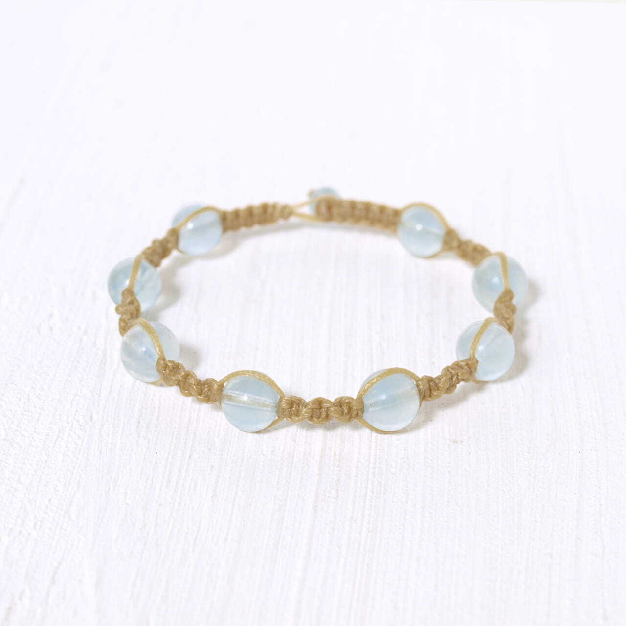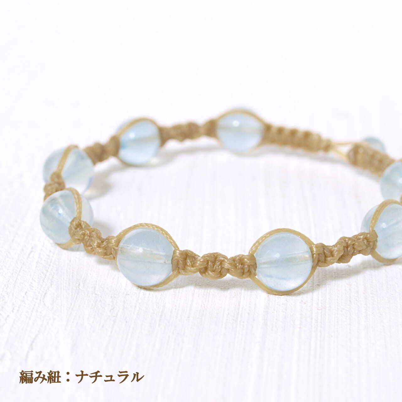 アクアマリン8ミリ玉ナチュラルマクラメブレスレット