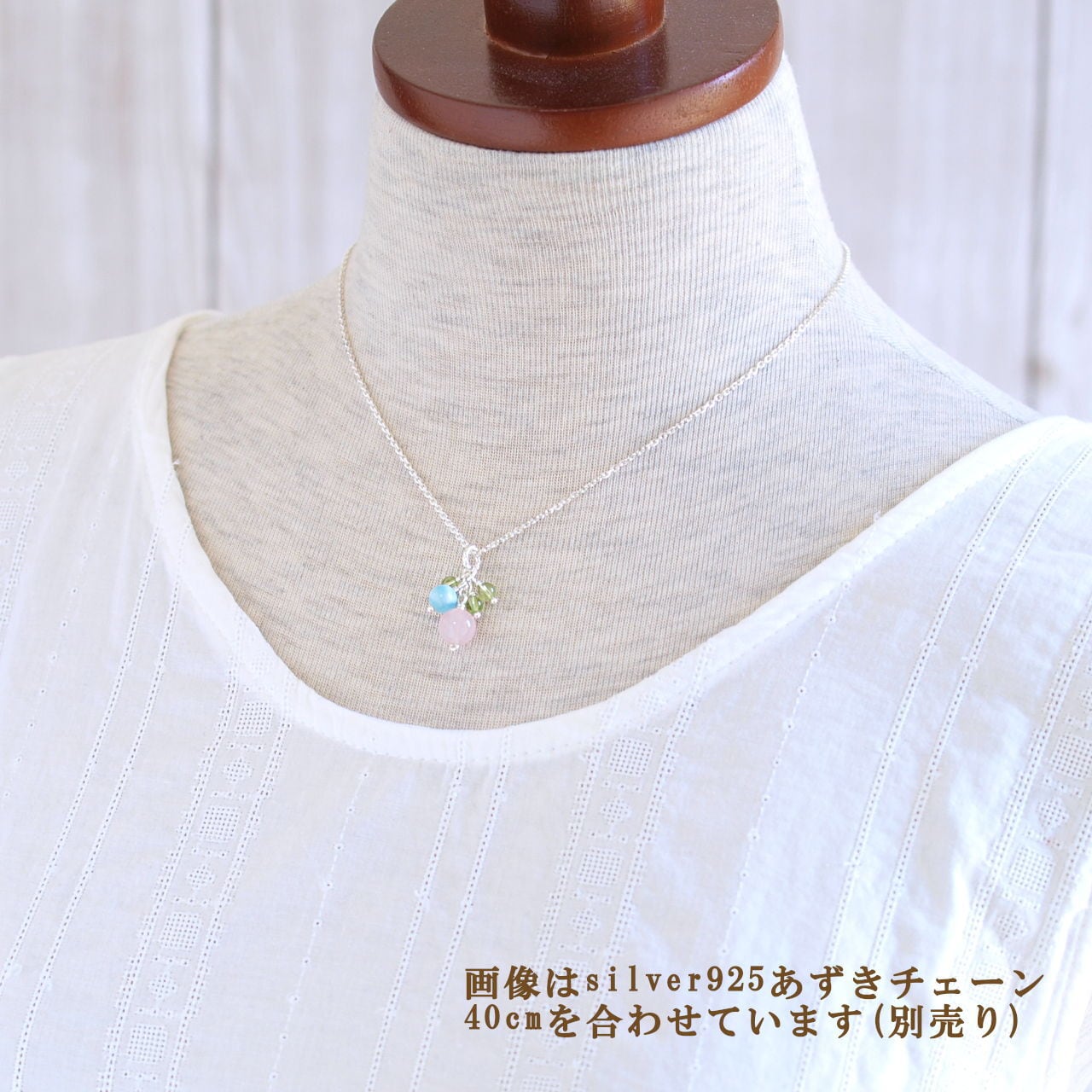 画像は見本品です。近い品質の天然石をこちらで選んでお作りいたします。粒によって色あいや模様が異なる場合がありますが、天然石の特性としてご了承ください。