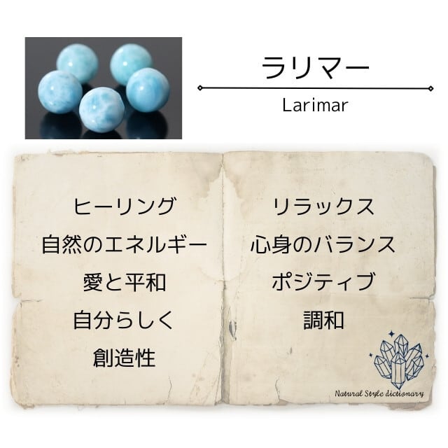 ラリマーに癒やされると、心がとても静かで、ゆったりと落ち着いていられます。誰だって機嫌のいい人のそばにいたいもの。ラリマーの安らぎはあなたの素直で優しい面を大きく引き出し、友人や家族、恋人との絆を深め、愛に満ちた豊かな関係を築けるよう導いてくれます。