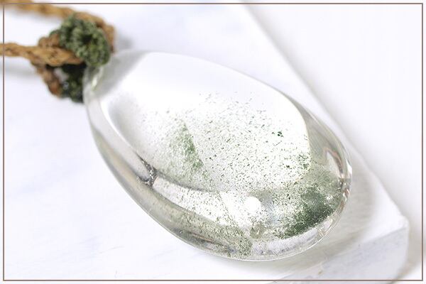 ガーデンクォーツは緑や茶色の内包物が水晶の中に閉じ込められることによってできる、自然の芸術ともいえる天然石です。ところが内包物を含む水晶は濁りやすい特性があります。せっかくの内包物や景色も、水晶が白く濁っていては見渡せません。そのため、品質の良いガーデンクォーツは、「内包物が偶然にも美しく閉じ込められていて、なおかつ石の中ま