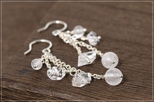 【限定】ヒマラヤ産水晶+ハーキマーダイヤモンドが揺れるsilver925チェーンピアス(イヤリング)