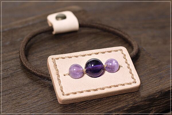 【限定】アメジスト+ラベンダーアメジスト本革ヘアゴムアクセサリー