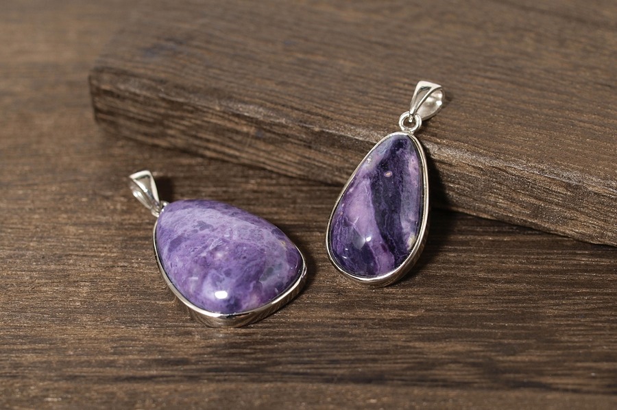 以前ミネラルショーで出品されていた大きな原石を見せてもらったことがあるのですが、中心の空洞に近い部分に綺麗な紫色の部分があって、他は全部茶色グレーでした。全体の10%にも満たない、このわずかな部分を切り出して磨いて、アクセサリーにしているんだなぁと感動したのを覚えています。大きな原石が採れても、美しいアクセサリーに加工されるのはほんの一部分だけ。希少で美しい石を大切にしたいと思います。