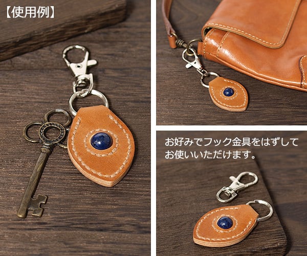 キーホルダー全長(フック金具から革の先端まで):約9cm