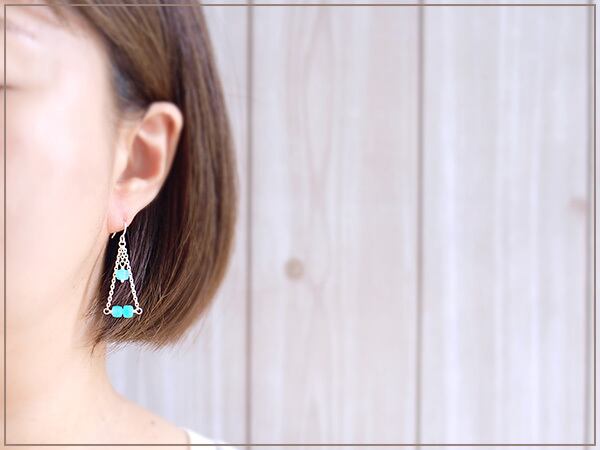 【限定】アマゾナイトキューブと三角チェーンsilver925ピアス(イヤリング)