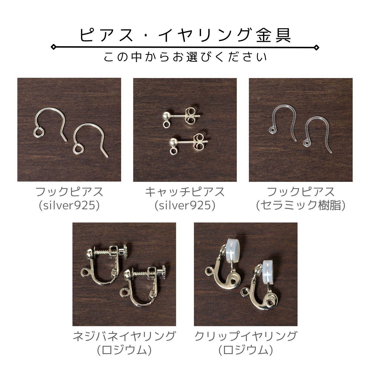 お客様のご希望のピアス金具(イヤリング金具)を合わせて制作いたします。ご注文をいただいてから石を選んで制作します。画像は見本です。画像の見本品と近い品質の石をお届けいたします。