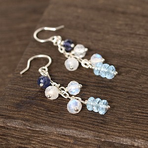 【限定】レインボームーンストーン+スカイブルートパーズ+アイオライトsilver925チェーンピアス(イヤリング)