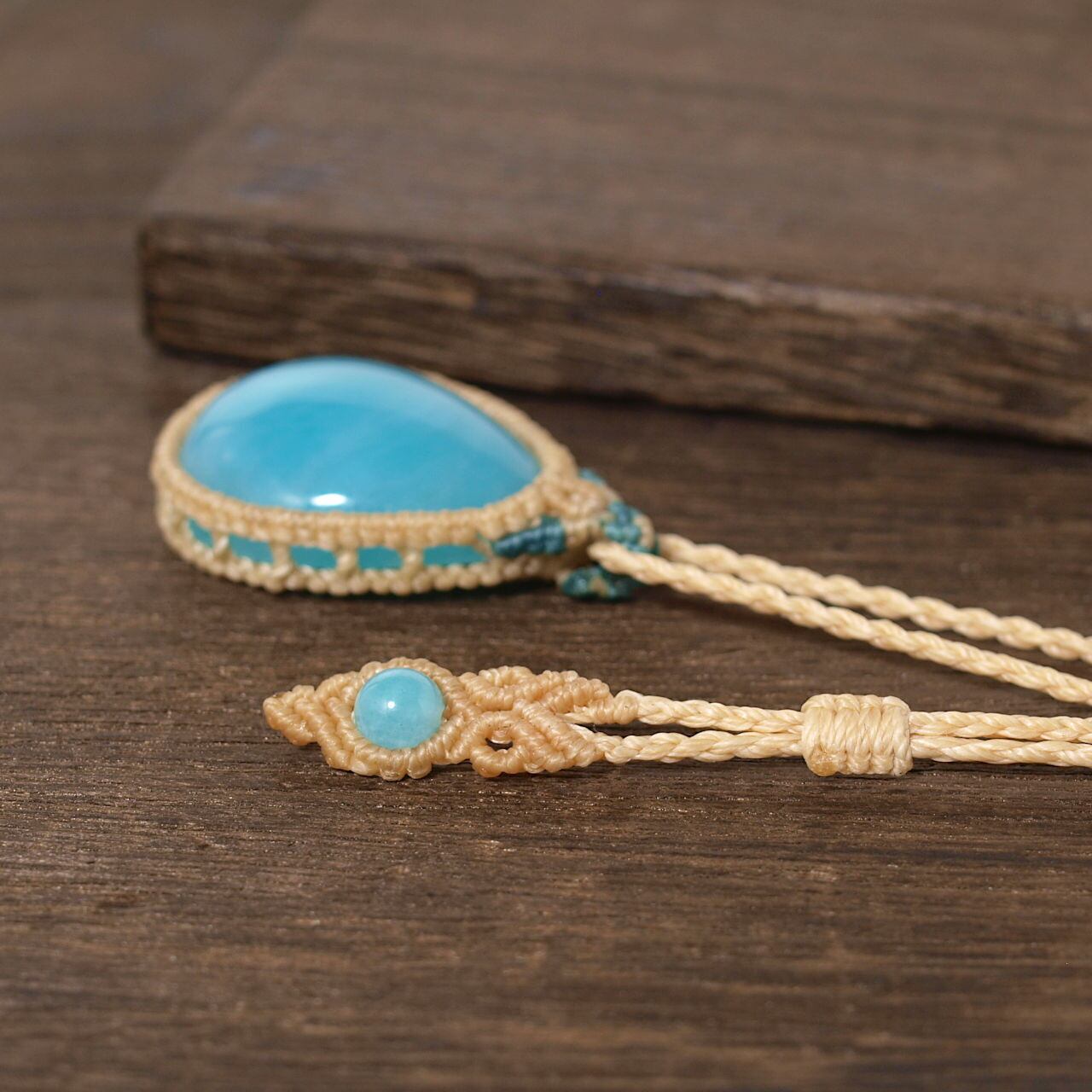 【一点物】アマゾナイトの雫型ルースを包んだマクラメネックレスNo.3