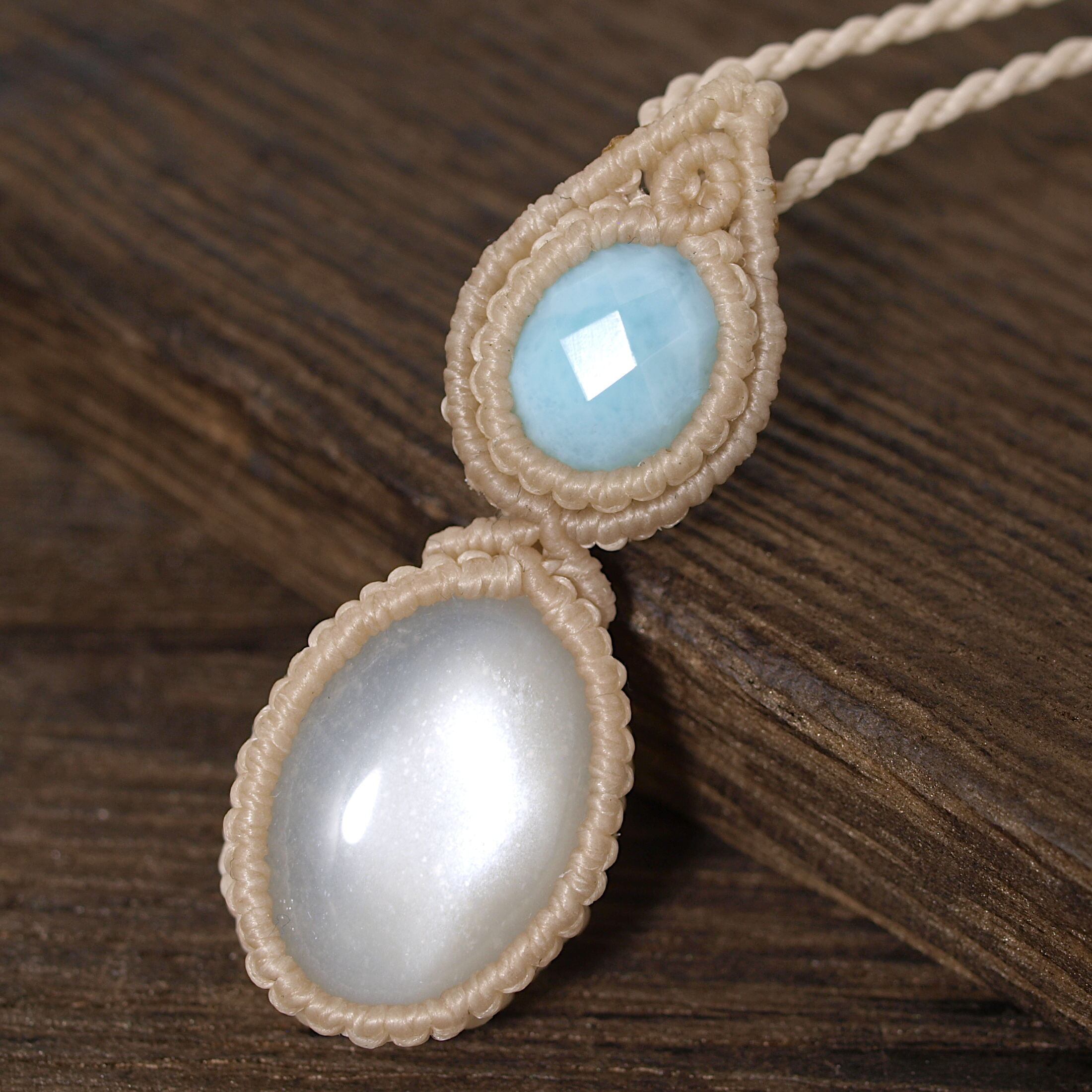 【一点物】ラリマー+ムーンストーン連結マクラメネックレスNo.1