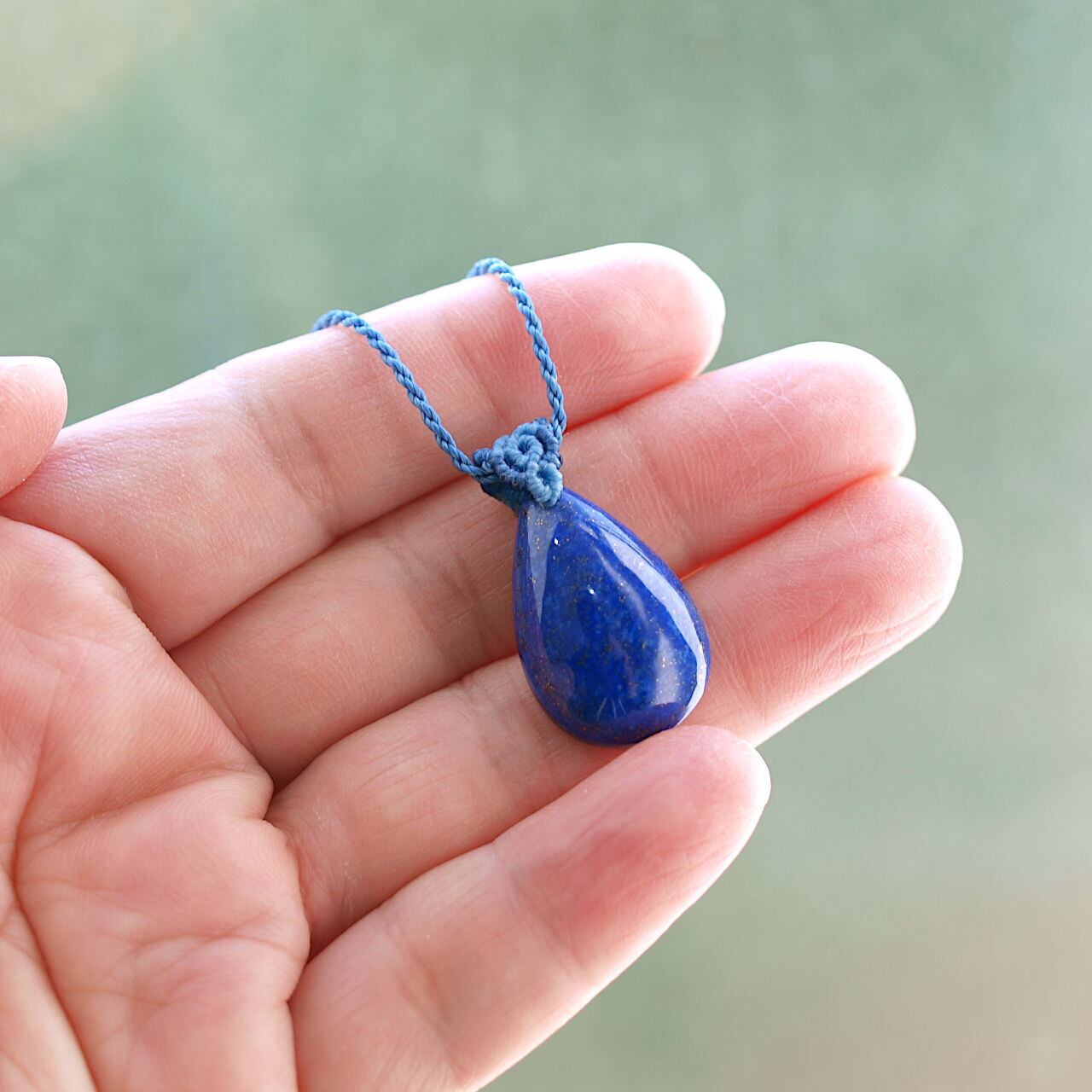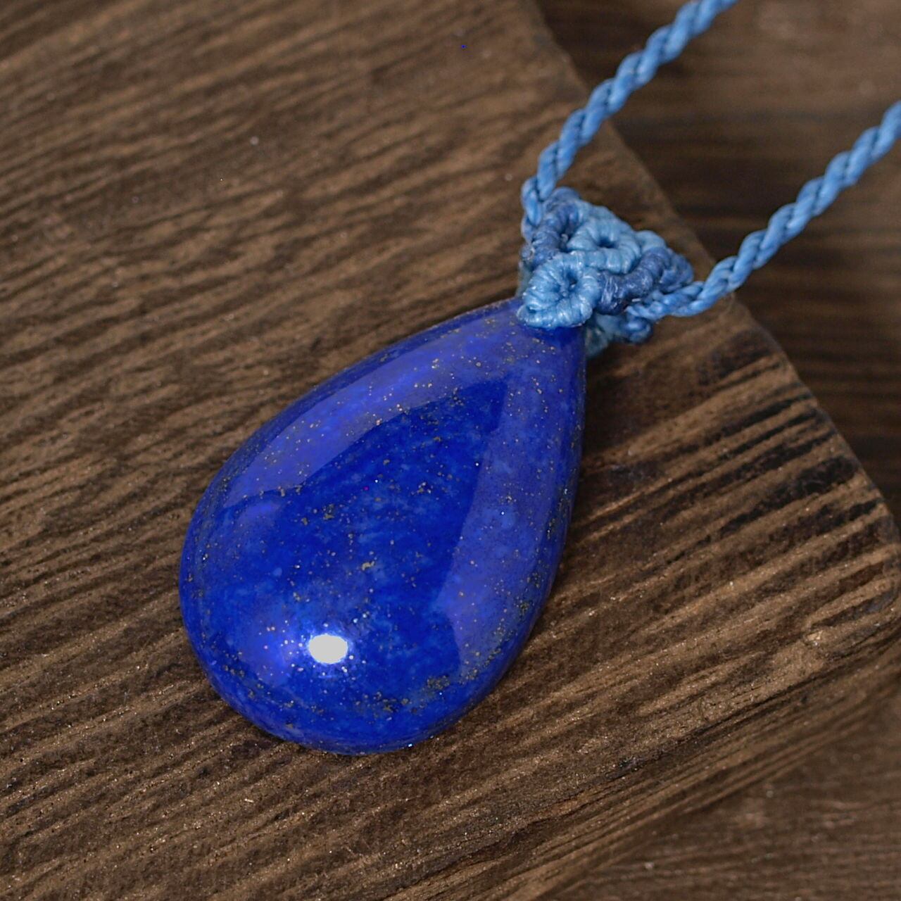 【一点物】ラピスラズリの雫型ルースを下げたマクラメネックレスNo.14