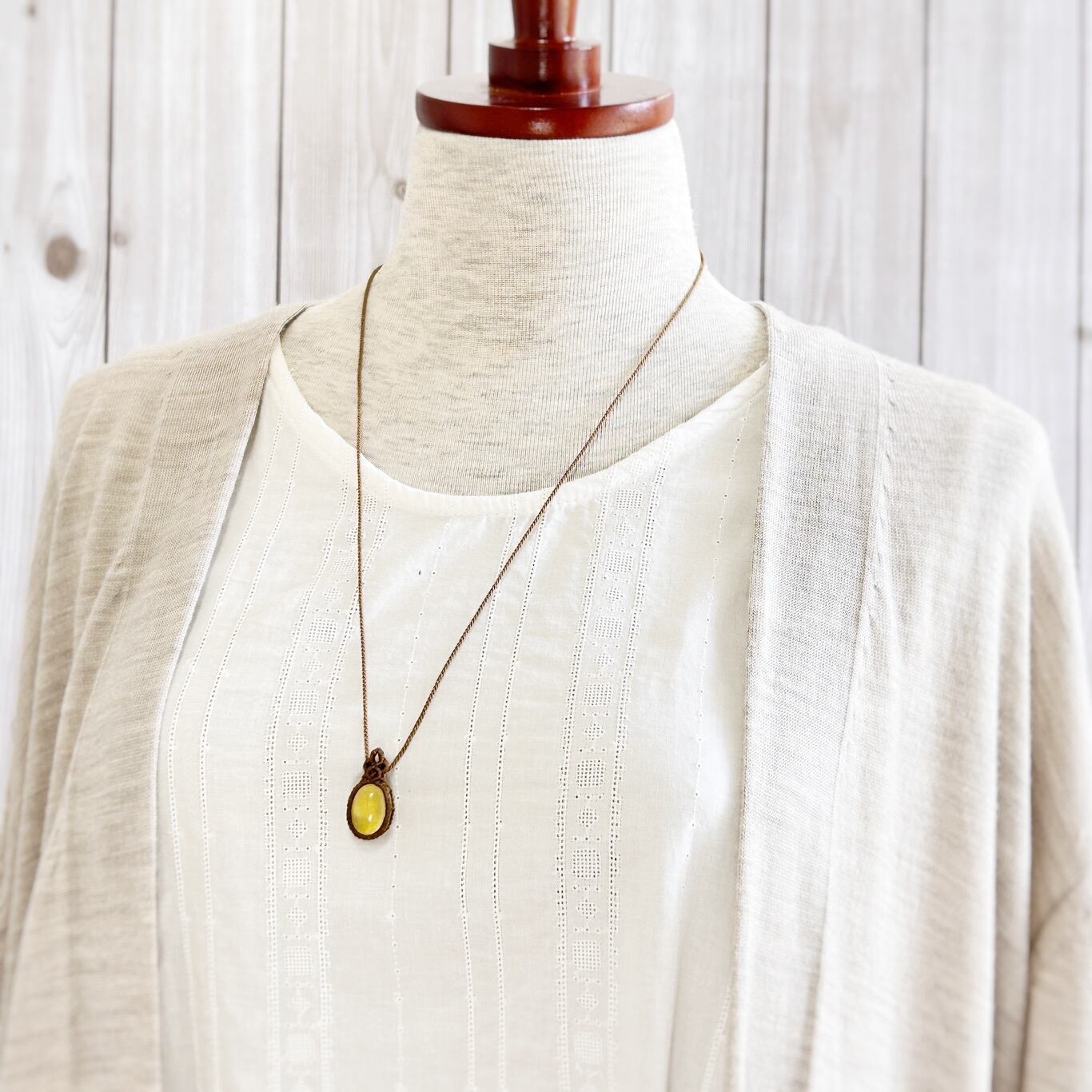 【一点物】フローライトの小ぶりなルースを包んだマクラメネックレスNo.4(イエロー)