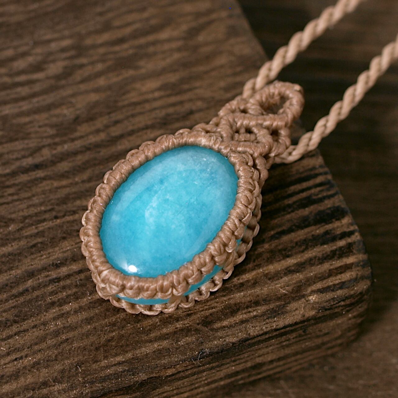 【一点物】ペルー産アマゾナイトの小ぶりなルースを包んだマクラメネックレスNo.2