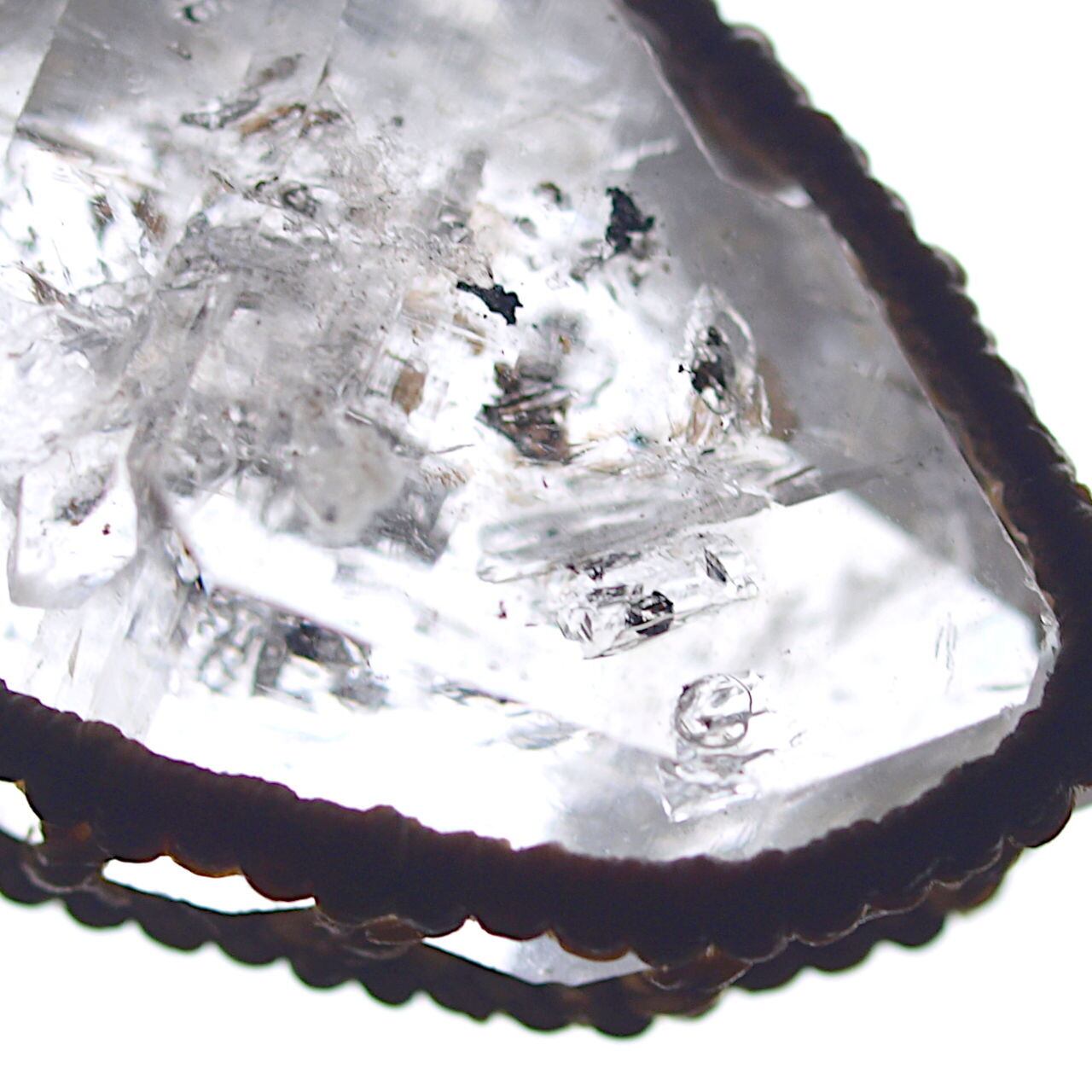 ハーキマーダイヤモンドの輝きの秘密は、母石であるドロマイト中のコールタールのような成分が、石の表面をコーティングするからだと考えられています。確かに、ハーキマーダイヤモンドの中には黒いタール系の内包物が含まれる事が多いです。