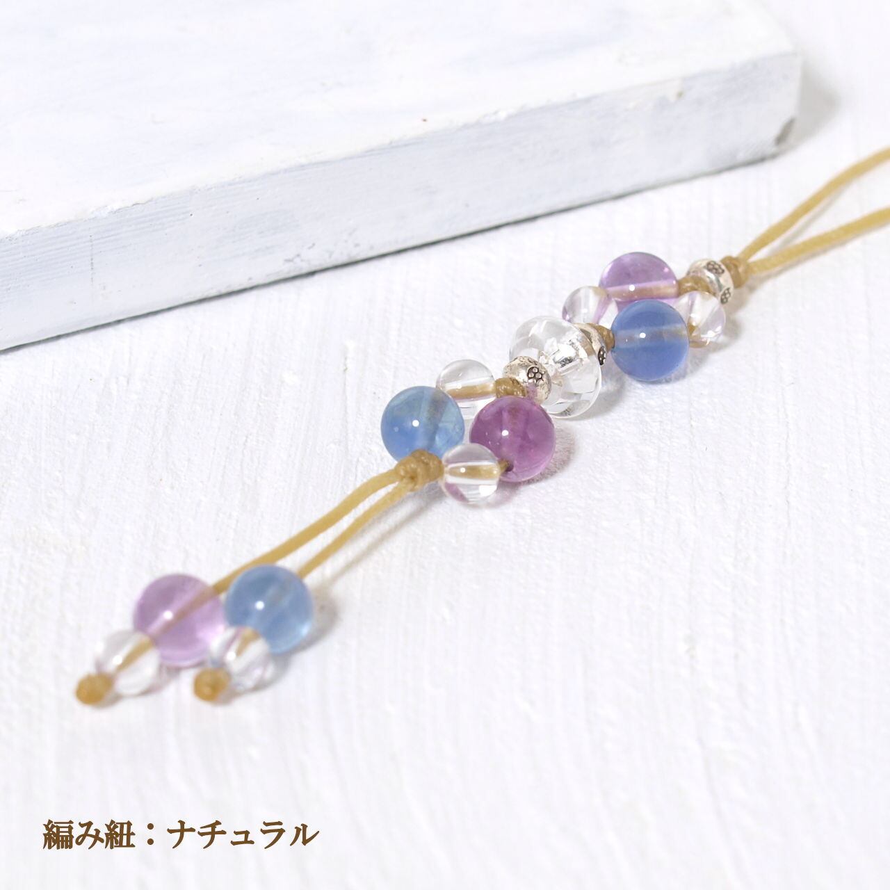 パープルフローライト+ブルーフローライト+水晶花*花マクラメストラップ