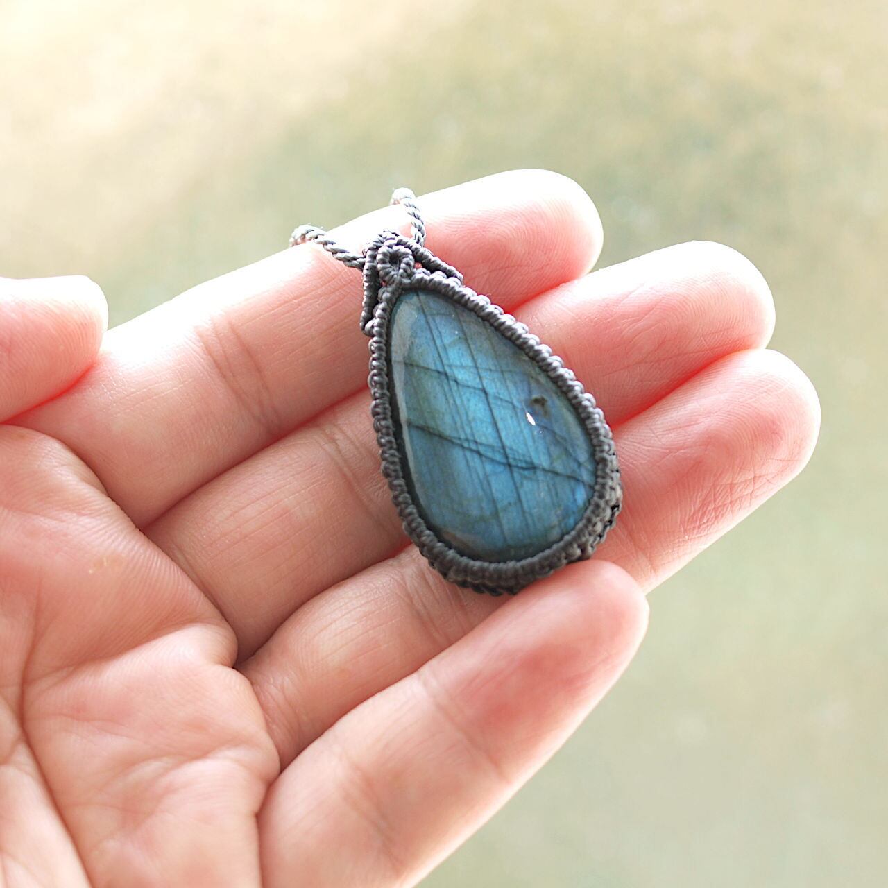 【一点物】ラブラドライトの大きなルースを包んだマクラメネックレスNo.7