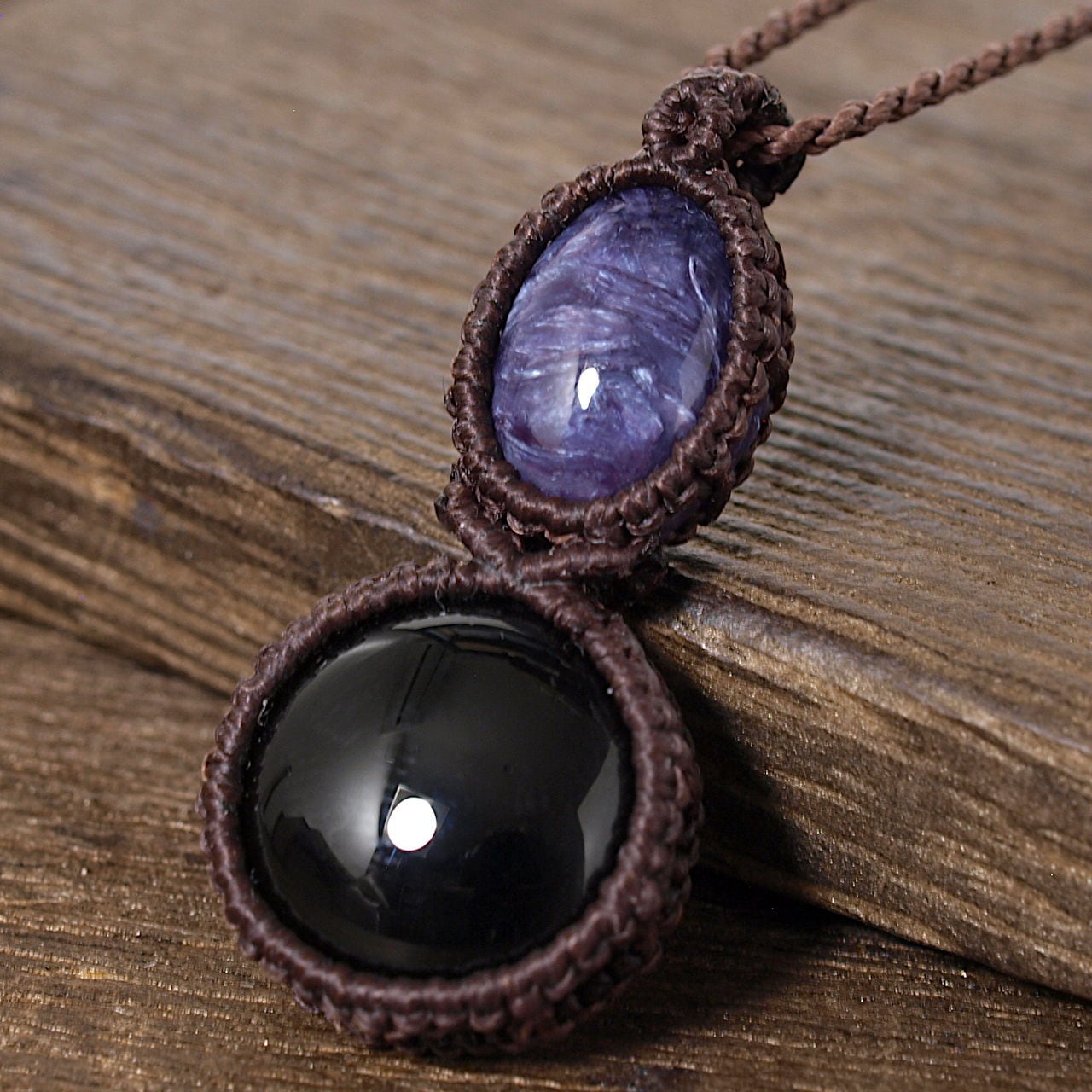 【一点物】チャロアイト+オニキス連結マクラメネックレス