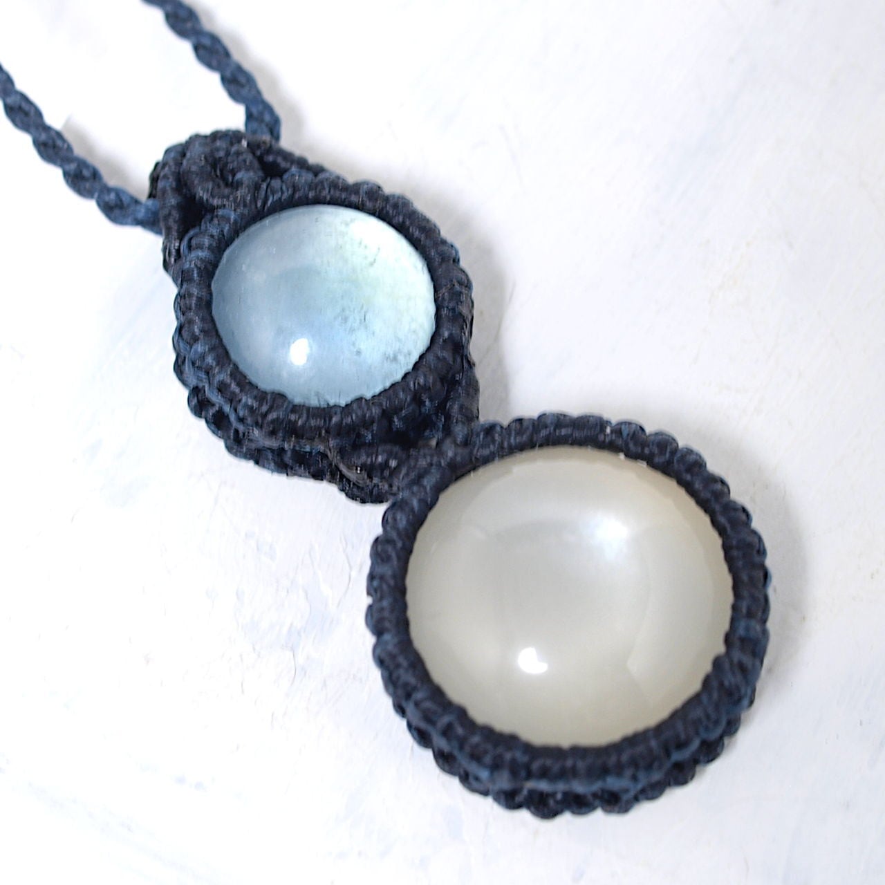 【一点物】アクアマリン+ムーンストーン連結マクラメネックレス